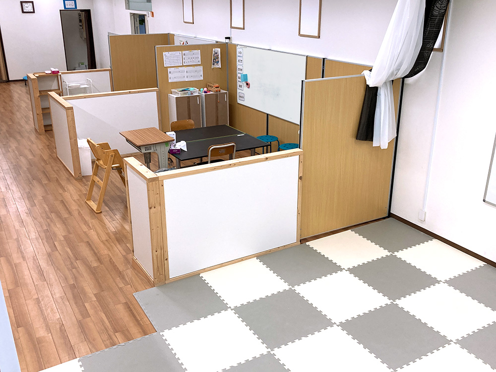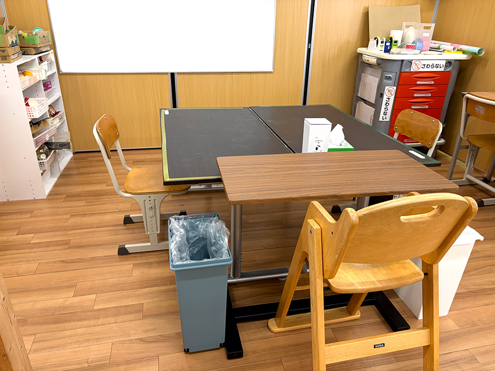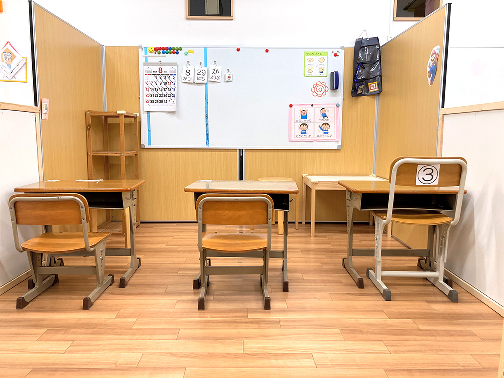 お子さまが集中できる環境になっております。ここではお子さま一人ひとりに合わせた課題を、指導員と一緒に取り組みます。
